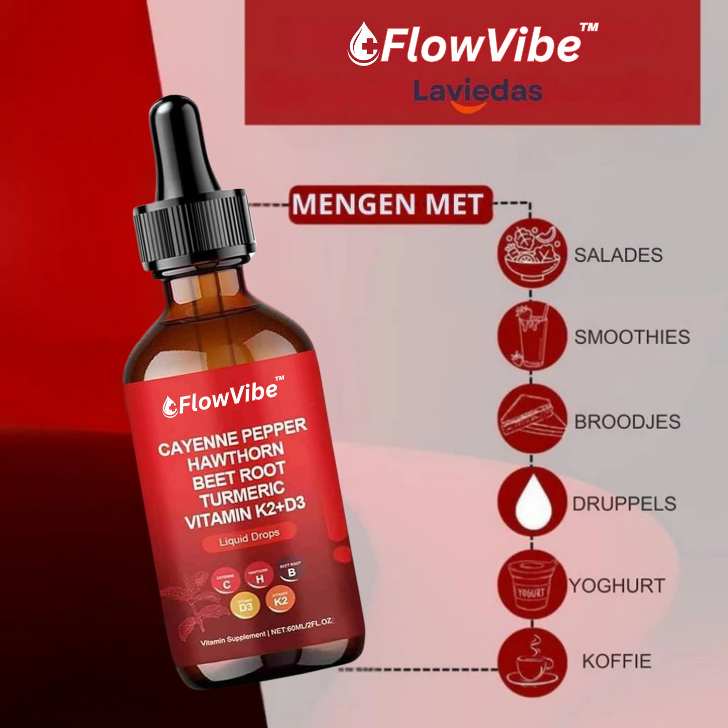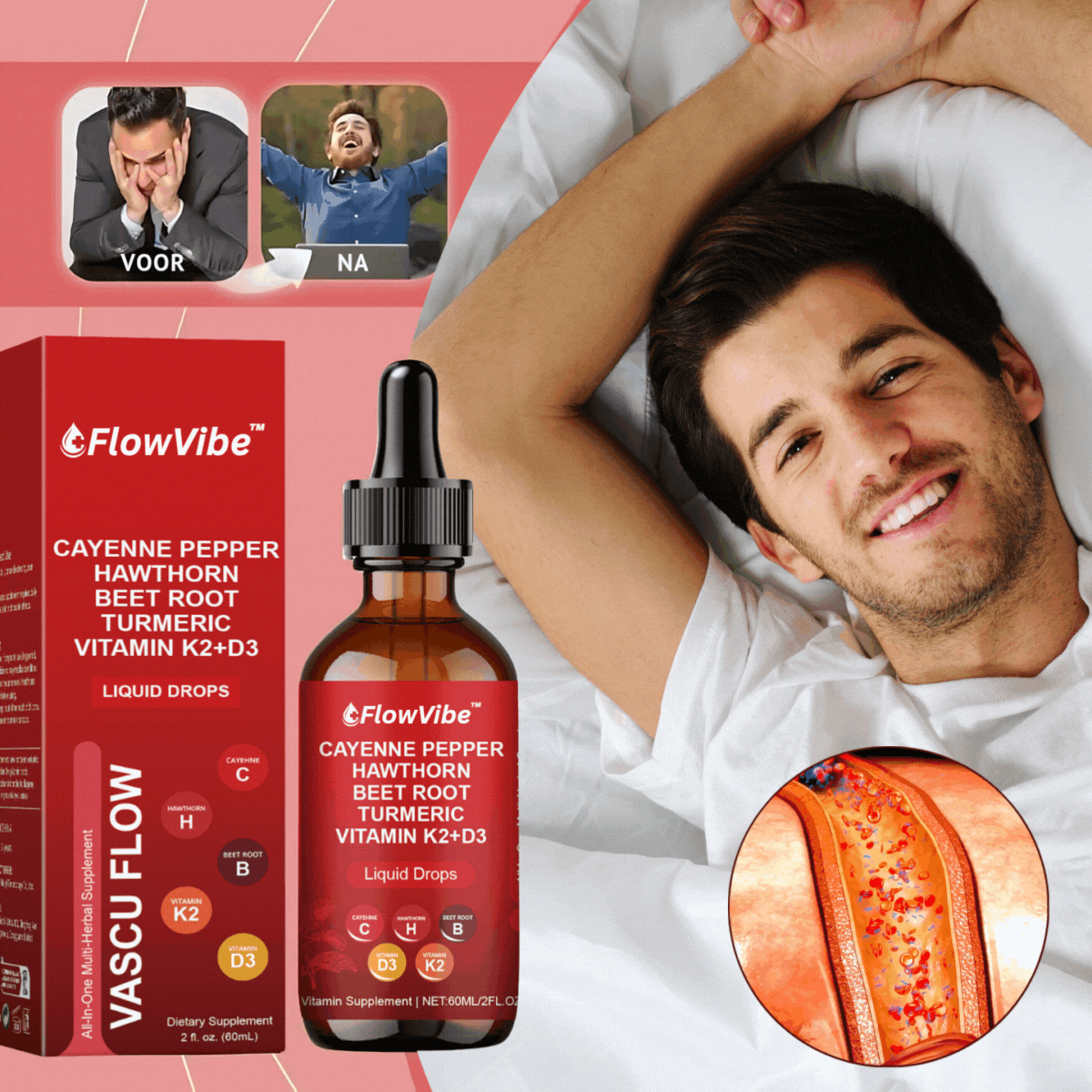 FlowVibe™ is jouw natuurlijke boost voor meer energie, uithoudingsvermogen en zelfvertrouwen. Geen middagdipjes meer. Geen onzekerheid. Alleen jij – in topvorm, klaar om te presteren op het werk, in de gym én daarbuiten.