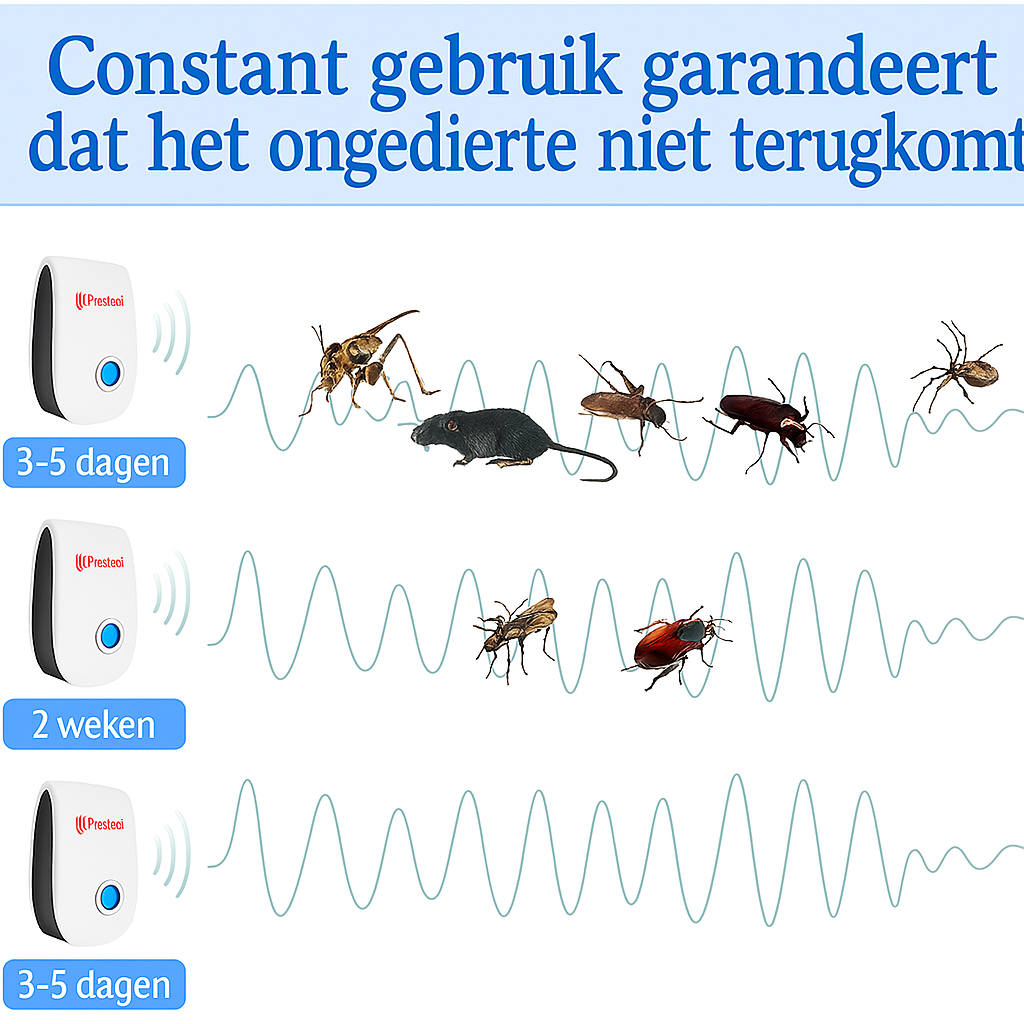Ultra stil maar dodelijk effectief - De frequenties storen het zenuwstelsel van plagen, zonder enig geluid of geur.